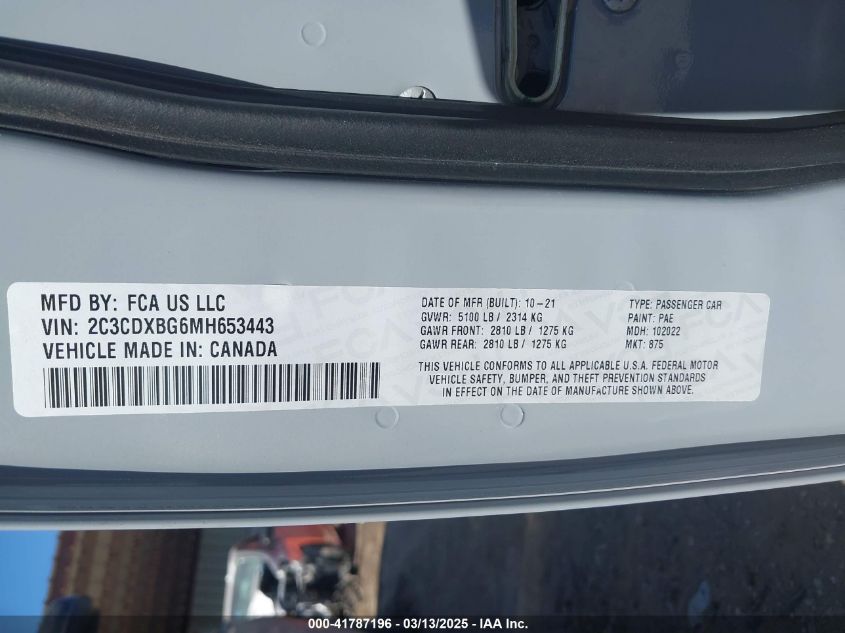 2021 DODGE CHARGER 2021 року Бензин, 3.6, Задний привод, vin - 2C3CDXBG6MH****** из США