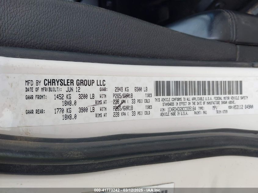 Цвет БелыйЦилиндры 6Привод НеизвестноVIN 1C4RDHDG9CC******Состояние НеизвестноПовреждения Передняя или задняя AutoRIA