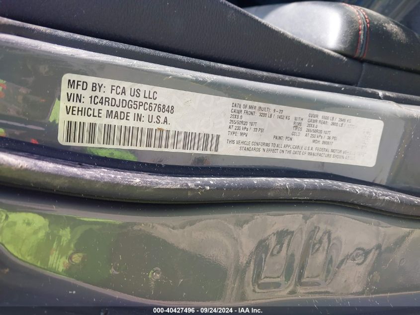 2023 DODGE DURANGO 2023 року Бензин, 3.6, Полный привод, vin - 1C4RDJDG5PC****** из США