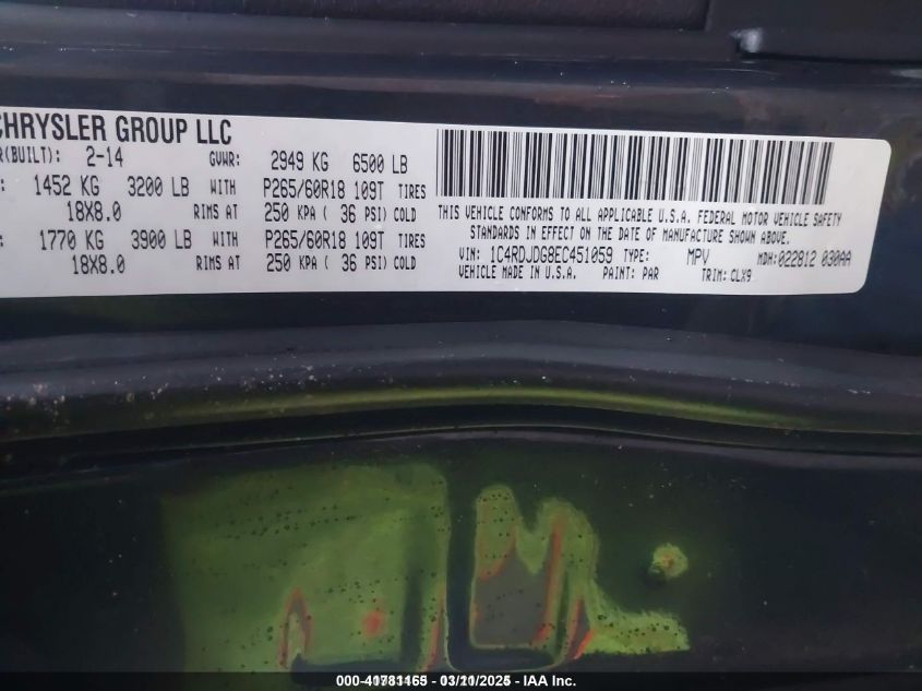 2014 DODGE DURANGO 2014 року Бензин, 3.6, Полный привод, vin - 1C4RDJDG8EC****** из США