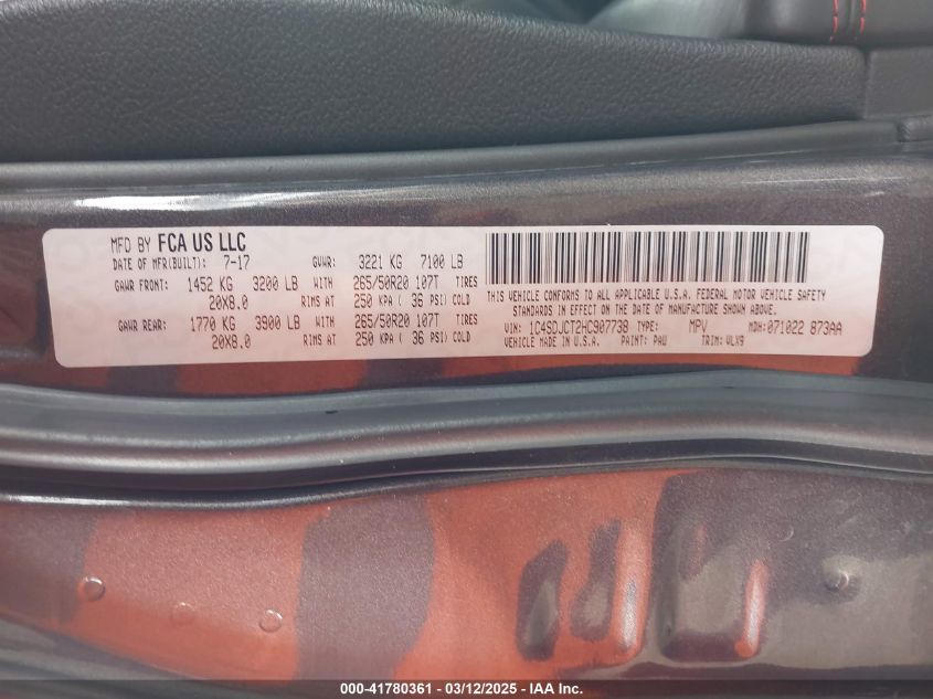 2017 DODGE DURANGO 2017 року Бензин, 5.7, Полный привод, vin - 1C4SDJCT2HC****** из США