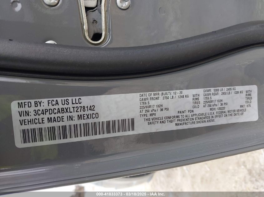 2020 DODGE JOURNEY 2020 року Бензин, 2.4, Передний привод, vin - 3C4PDCABXLT****** из США