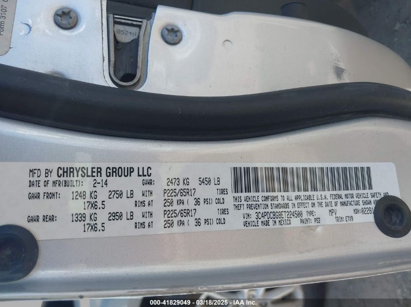 Цвет СеребряныйЦилиндры 6Привод Передний приводVIN 3C4PDCBG8ET******Состояние НеизвестноПовреждения Передняя или задняя AutoRIA