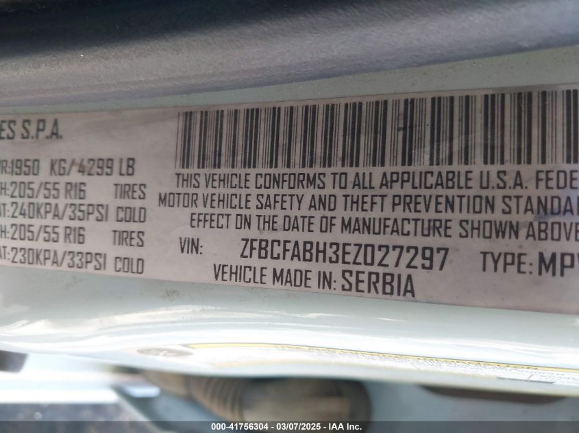 Цвет СинийЦилиндры 4Привод Передний приводVIN ZFBCFABH3EZ******Состояние НеизвестноПовреждения Передняя или задняяДата аукциона 2025-03-21 AutoRIA