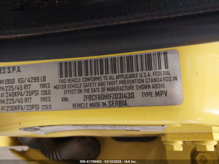 Цвет ЖелтыйЦилиндры 4Привод Передний приводVIN ZFBCFADH1FZ******Состояние НеизвестноПовреждения По всему авто AutoRIA