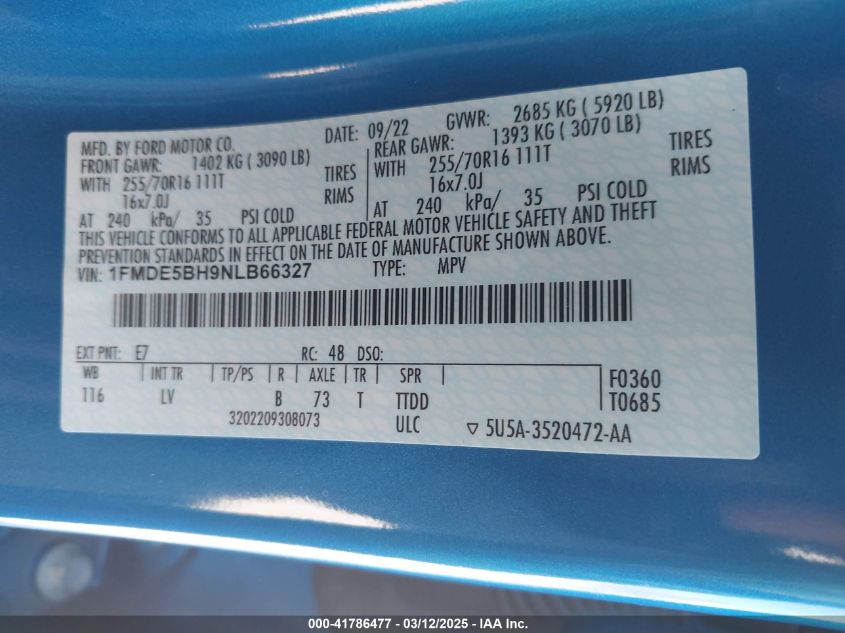Цвет СинийЦилиндры 4Привод Полный приводVIN 1FMDE5BH9NL******Состояние НеизвестноПовреждения Передняя или задняяДата аукциона 2025-03-26 AutoRIA