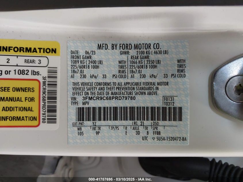 Цвет БелыйЦилиндры 3Привод Полный приводVIN 3FMCR9C68PR******Состояние НеизвестноПовреждения Передняя правая AutoRIA