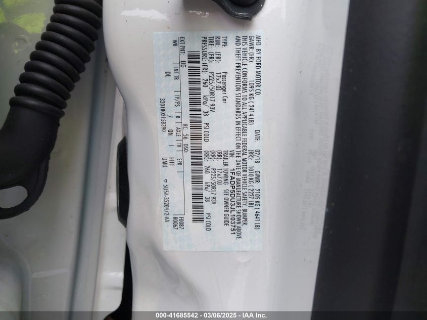 Цвет БелыйЦилиндры 4Привод Передний приводVIN 1FADP5DU3JL******Состояние НеизвестноПовреждения Передняя правая AutoRIA