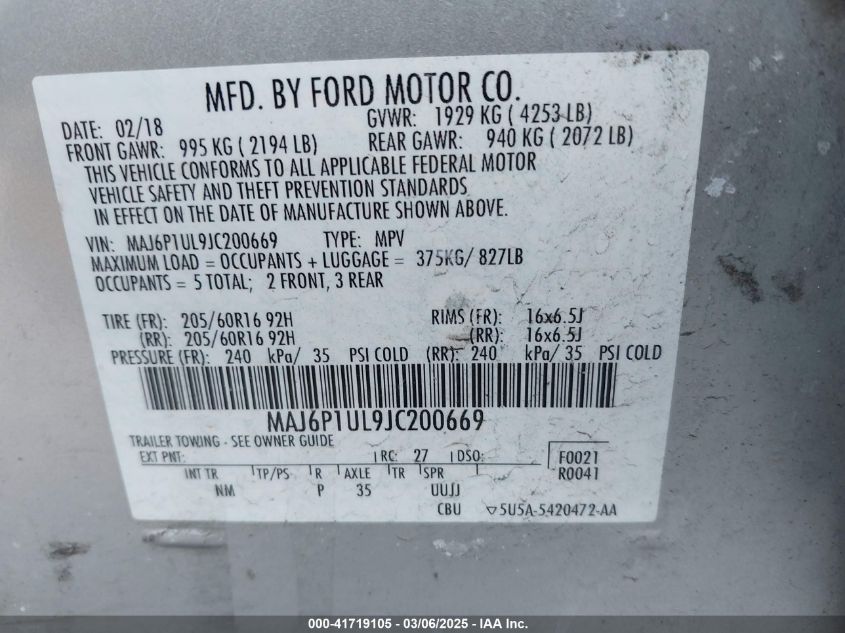 2018 FORD ECOSPORT 2018 року Бензин, 2.0, Полный привод, vin - MAJ6P1UL9JC****** из США