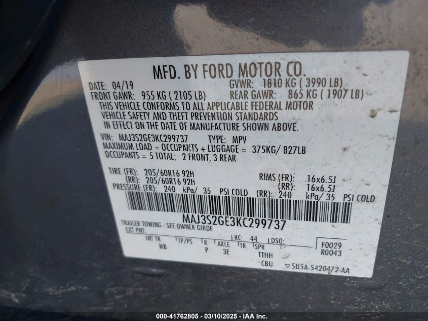 2019 FORD ECOSPORT 2019 року Бензин, 1.0, Передний привод, vin - MAJ3S2GE3KC****** из США