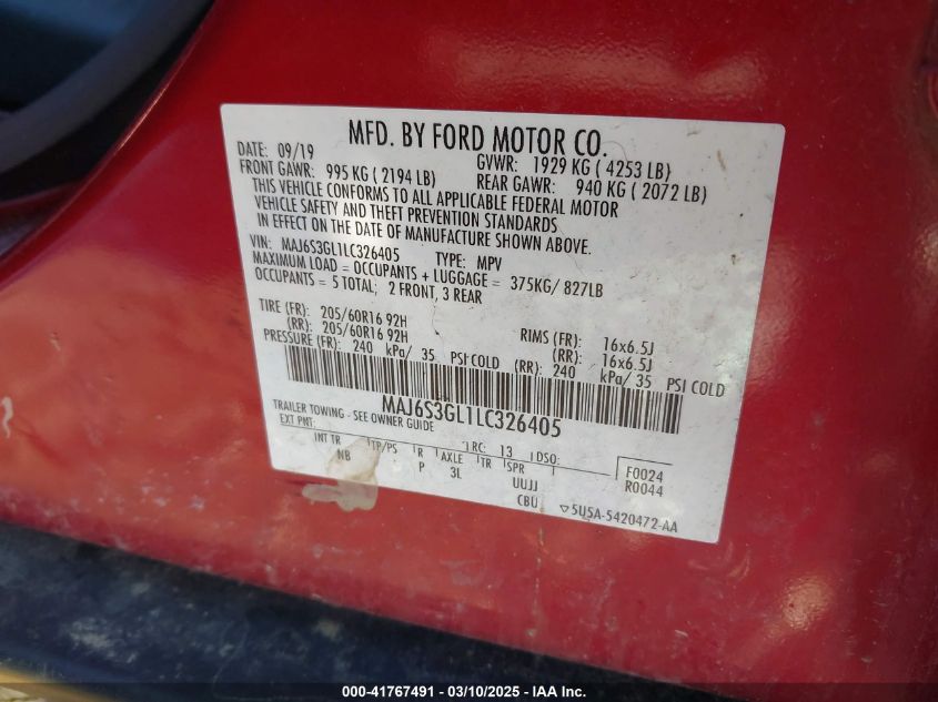 2020 FORD ECOSPORT 2020 року Бензин, 2.0, Полный привод, vin - MAJ6S3GL1LC****** из США