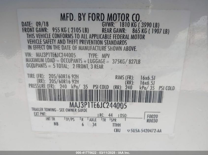 2018 FORD ECOSPORT 2018 року Бензин, 1.0, Передний привод, vin - MAJ3P1TE6JC****** из США