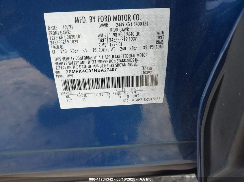2022 FORD EDGE 2022 року Бензин, 2.0, Полный привод, vin - 2FMPK4G91NB****** из США