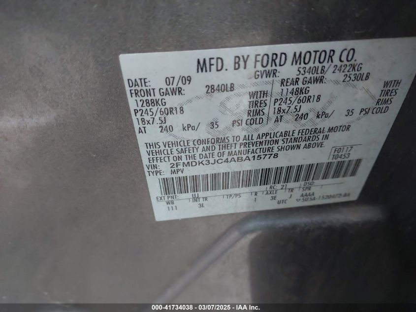 2010 FORD EDGE 2010 року Бензин, 3.5, Передний привод, vin - 2FMDK3JC4AB****** из США