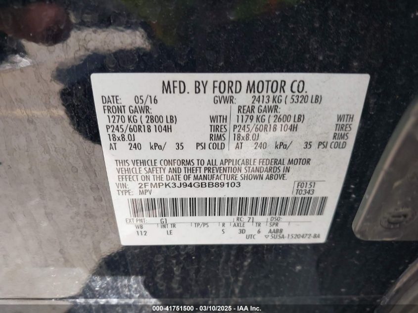 Цвет ЧерныйЦилиндры 4Привод Передний приводVIN 2FMPK3J94GB******Состояние НеизвестноПовреждения Передняя или задняя AutoRIA