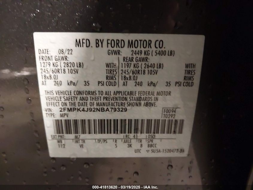2022 FORD EDGE 2022 року Бензин, 2.0, Полный привод, vin - 2FMPK4J92NB****** из США