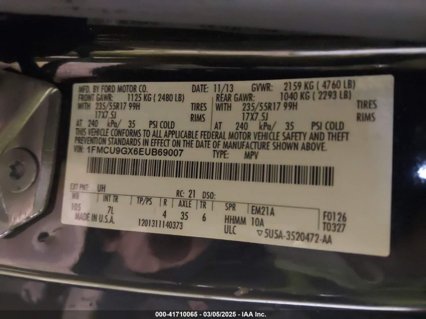 2014 FORD ESCAPE 2014 року Бензин, 1.6, Полный привод, vin - 1FMCU9GX6EU****** из США