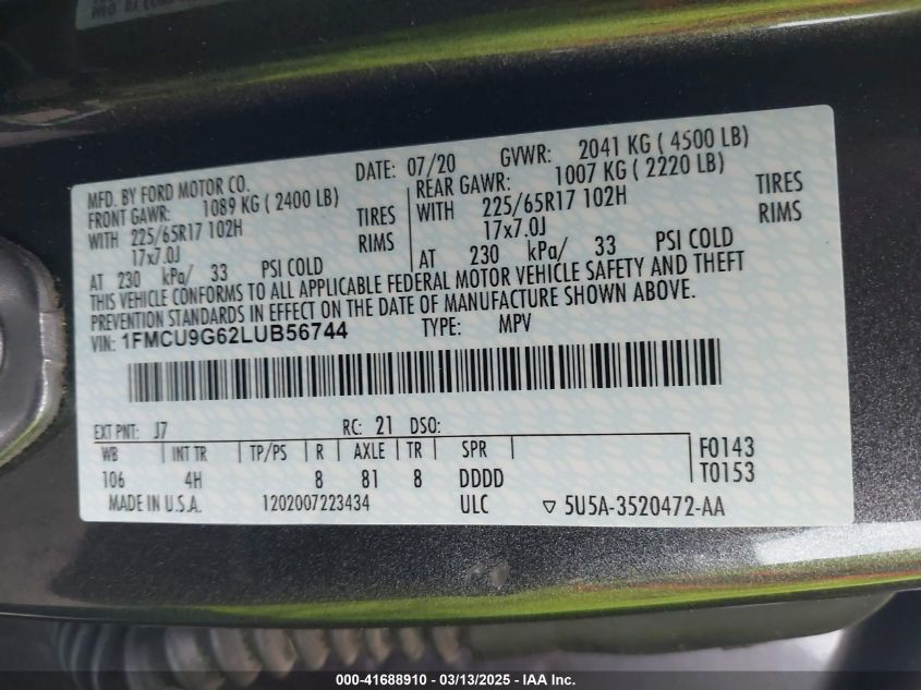 2020 FORD ESCAPE 2020 року Бензин, 1.5, Полный привод, vin - 1FMCU9G62LU****** из США