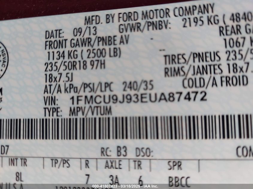 Цвет КрасныйЦилиндры 4Привод Полный приводVIN 1FMCU9J93EU******Состояние НеизвестноПовреждения Передняя или задняя AutoRIA