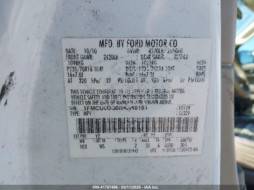Цвет БелыйЦилиндры 6Привод Передний приводVIN 1FMCU0DG0BK******Состояние НеизвестноПовреждения Передняя правая AutoRIA