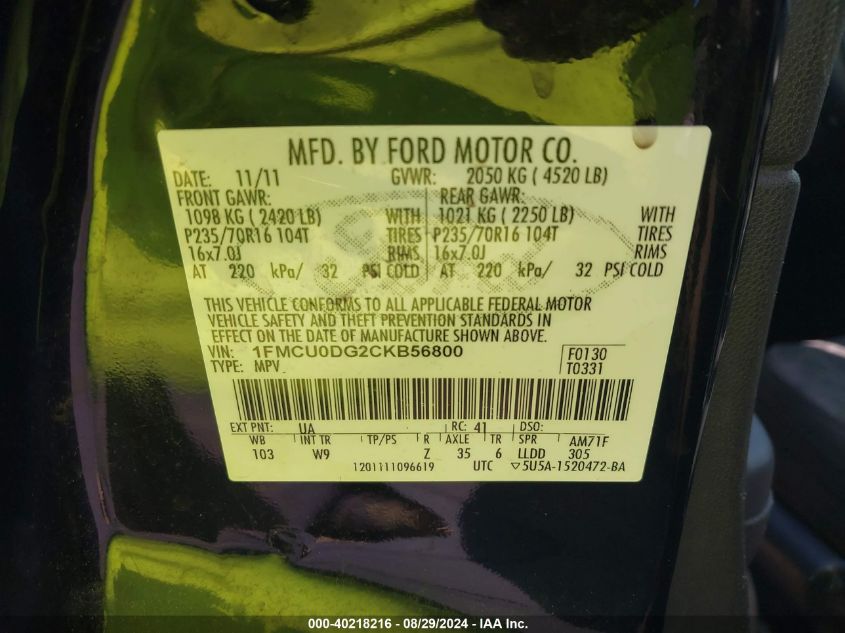 2012 FORD ESCAPE 2012 року Бензин, 3.0, Передний привод, vin - 1FMCU0DG2CK****** из США