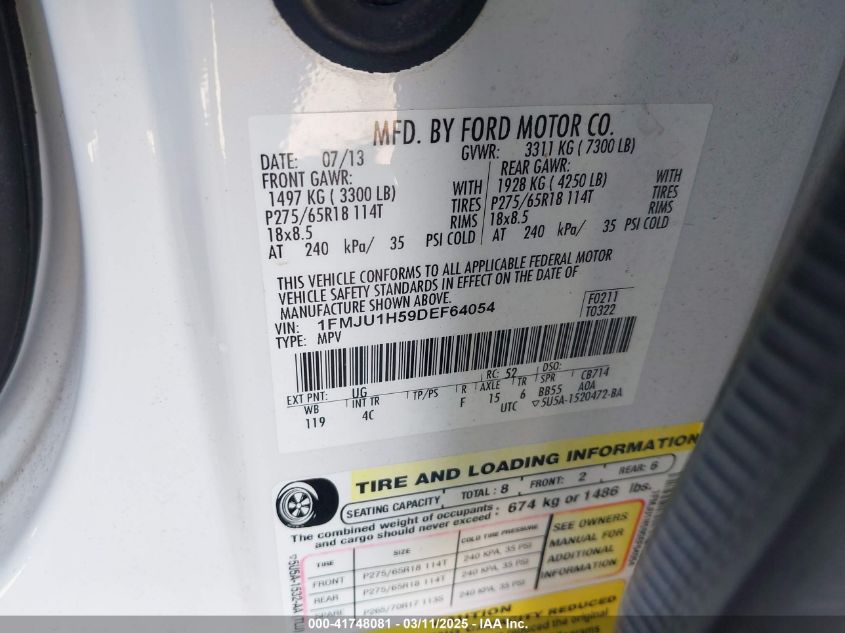 2013 FORD EXPEDITION 2013 року Бензин, 5.4, Неизвестно, vin - 1FMJU1H59DE****** из США
