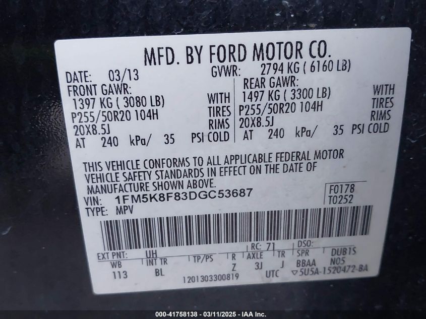2013 FORD EXPLORER 2013 року Бензин, 3.5, Полный привод, vin - 1FM5K8F83DG****** из США