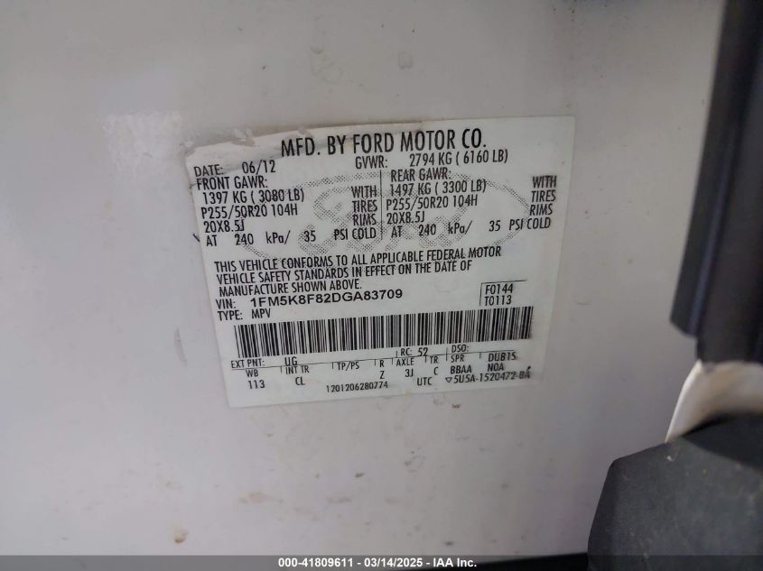 Цвет БелыйЦилиндры 6Привод Полный приводVIN 1FM5K8F82DG******Состояние НеизвестноПовреждения Передняя или задняя AutoRIA