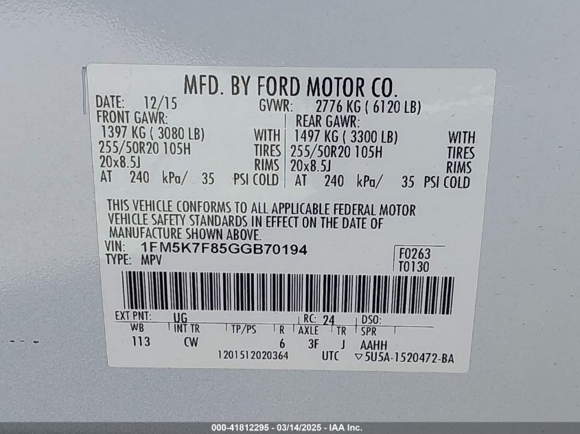 Цвет БелыйЦилиндры 6Привод Передний приводVIN 1FM5K7F85GG******Состояние НеизвестноПовреждения Передняя или задняя AutoRIA