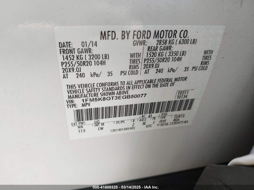 Цвет БелыйЦилиндры 6Привод Полный приводVIN 1FM5K8GT3EG******Состояние НеизвестноПовреждения Правая сторона AutoRIA