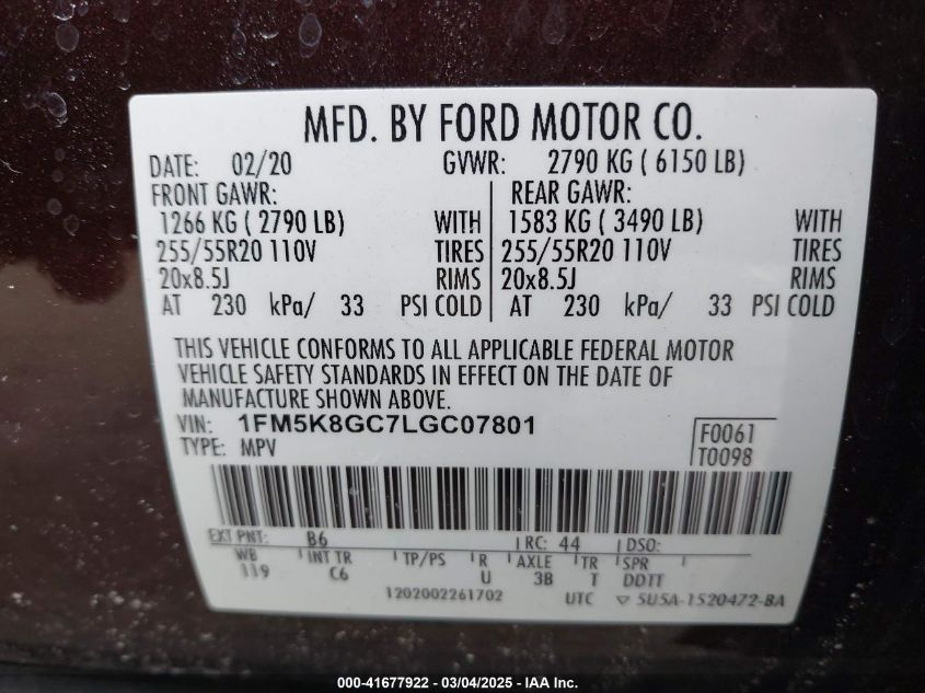Цвет КоричневийЦилиндры 6Привод Полный приводVIN 1FM5K8GC7LG******Состояние НеизвестноПовреждения Передняя или задняя AutoRIA