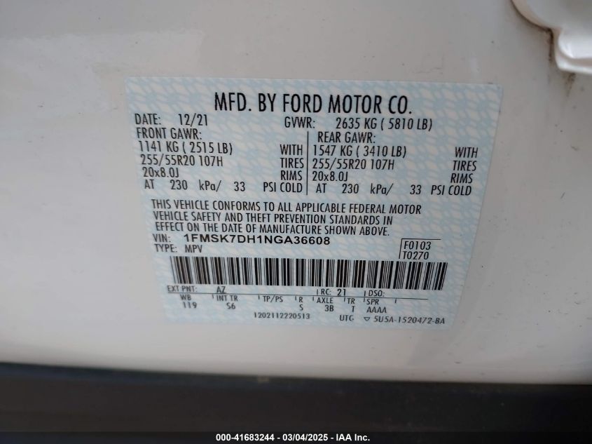 Цвет БелыйЦилиндры 4Привод НеизвестноVIN 1FMSK7DH1NG******Состояние НеизвестноПовреждения Передняя или задняя AutoRIA
