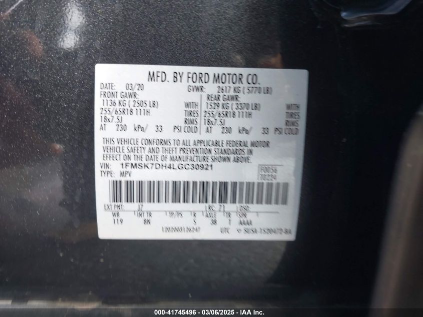 2020 FORD EXPLORER 2020 року Бензин, 2.3, Неизвестно, vin - 1FMSK7DH4LG****** из США