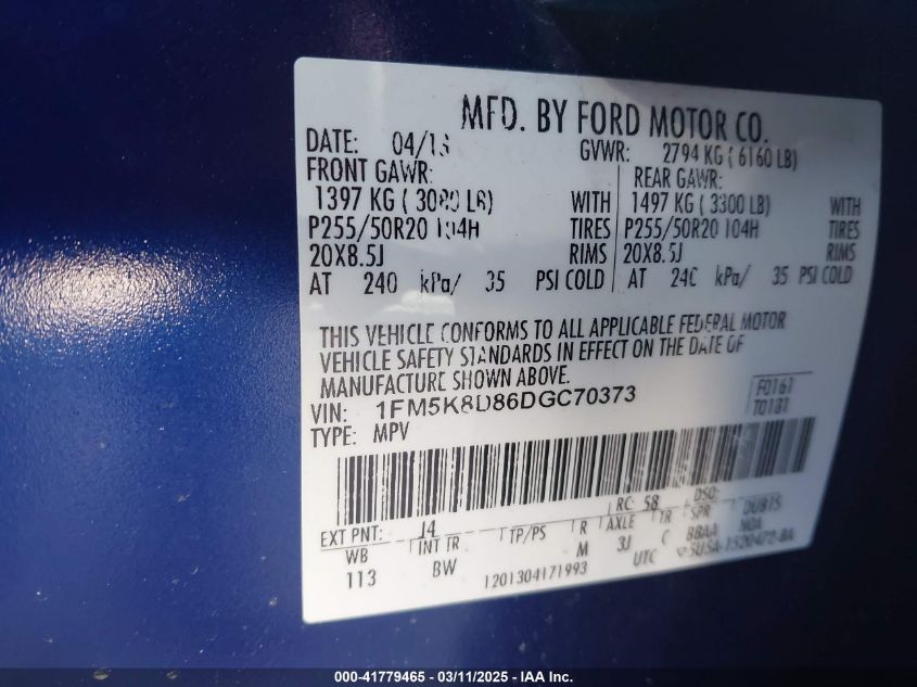 Цвет СинийЦилиндры 6Привод Полный приводVIN 1FM5K8D86DG******Состояние НеизвестноПовреждения Передняя правая AutoRIA