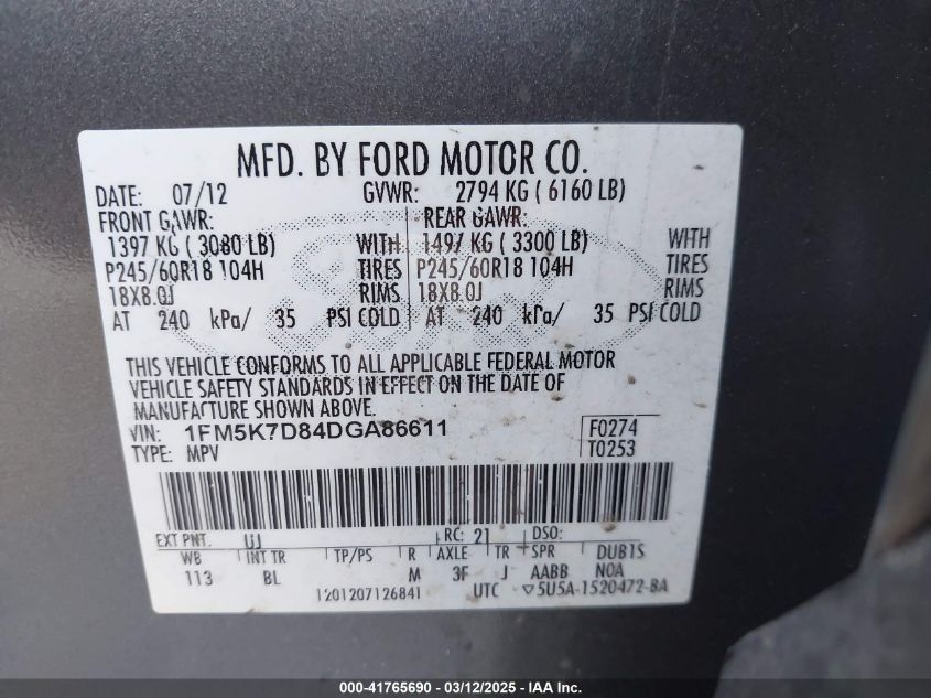 Цвет СерыйЦилиндры 6Привод Передний приводVIN 1FM5K7D84DG******Состояние НеизвестноПовреждения Правая сторона AutoRIA