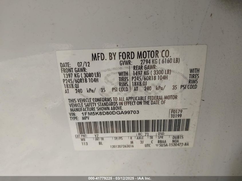 Цвет БелыйЦилиндры 6Привод Полный приводVIN 1FM5K8D80DG******Состояние НеизвестноПовреждения Задняя AutoRIA