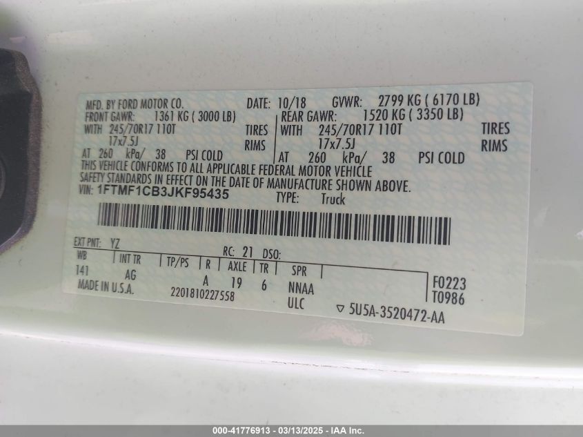 2018 FORD F-150 2018 року Бензин, 3.3, Неизвестно, vin - 1FTMF1CB3JK****** из США