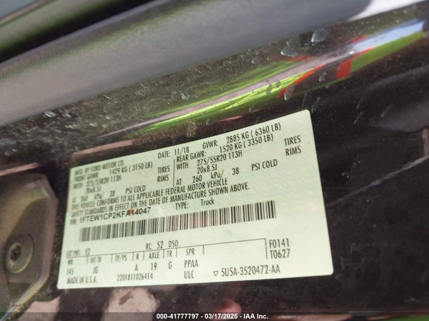 2019 FORD F-150 2019 року Бензин, 2.7, Неизвестно, vin - 1FTEW1CP2KF****** из США