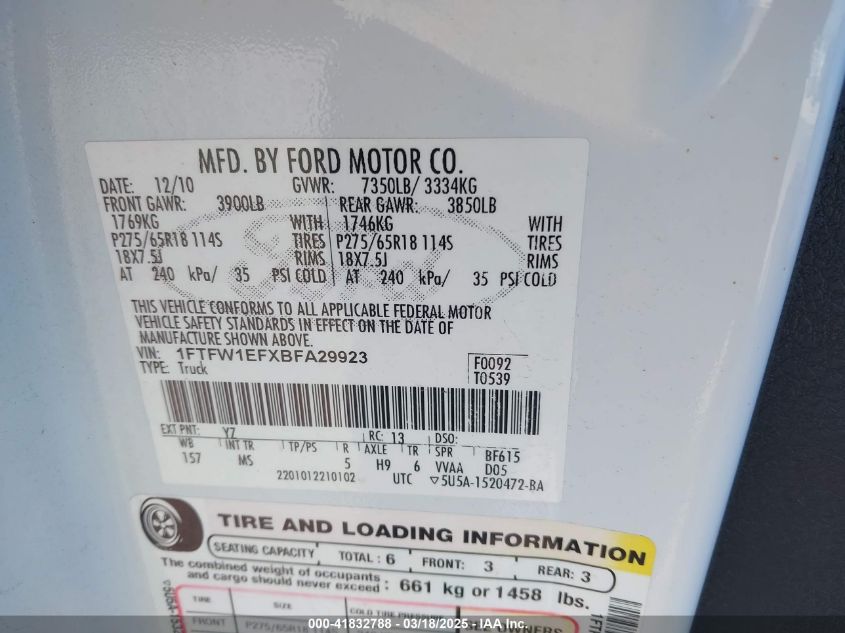 2011 FORD F-150 2011 року Бензин, 5.0, Полный привод, vin - 1FTFW1EFXBF****** из США