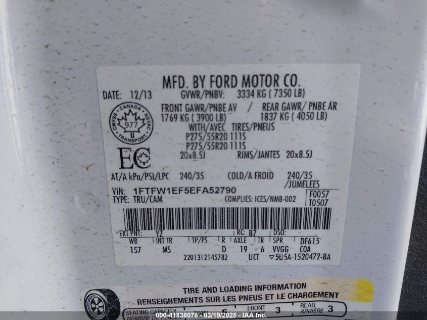 2014 FORD F-150 2014 року Бензин, 5.0, Полный привод, vin - 1FTFW1EF5EF****** из США
