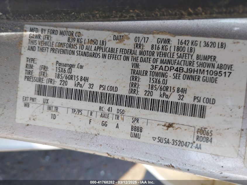 Цвет СеребряныйЦилиндры 4Привод Передний приводVIN 3FADP4BJ9HM******Состояние НеизвестноПовреждения Био/Химические AutoRIA