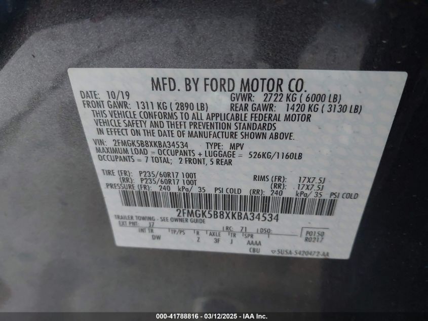 Цвет СерыйЦилиндры 6Привод Передний приводVIN 2FMGK5B8XKB******Состояние НеизвестноПовреждения Передняя или задняяДата аукциона 2025-03-25 AutoRIA