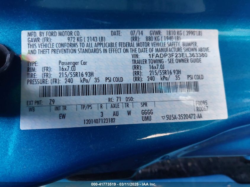 Цвет СинийЦилиндры 4Привод Передний приводVIN 1FADP3F23EL******Состояние НеизвестноПовреждения Задняя AutoRIA