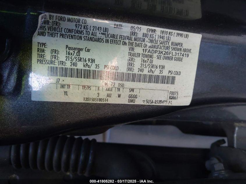 Цвет СерыйЦилиндры 4Привод Передний приводVIN 1FADP3K26FL******Состояние НеизвестноПовреждения Задняя AutoRIA