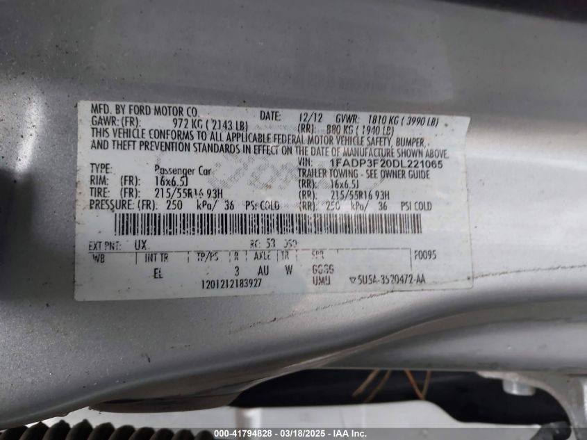 Цвет СеребряныйЦилиндры 4Привод Передний приводVIN 1FADP3F20DL******Состояние НеизвестноПовреждения Передняя или задняя AutoRIA