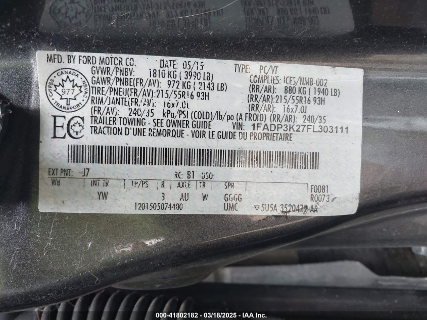 Цвет СерыйЦилиндры 4Привод Передний приводVIN 1FADP3K27FL******Состояние НеизвестноПовреждения Передняя или задняя AutoRIA