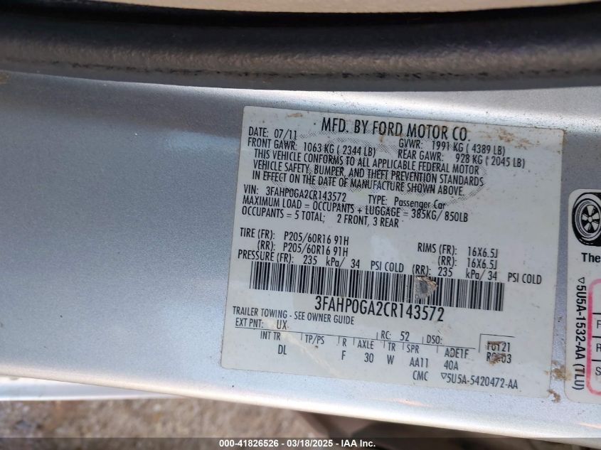 Цвет СеребряныйЦилиндры 4Привод Передний приводVIN 3FAHP0GA2CR******Состояние НеизвестноПовреждения Задняя AutoRIA