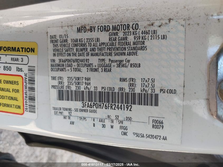 2015 FORD FUSION 2015 року Бензин, 2.5, Передний привод, vin - 3FA6P0H76FR****** из США
