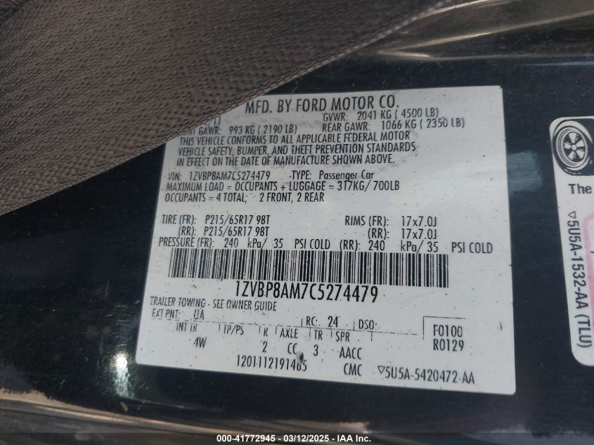 Цвет ЧерныйЦилиндры 6Привод Задний приводVIN 1ZVBP8AM7C5******Состояние НеизвестноПовреждения Передняя и задняя AutoRIA