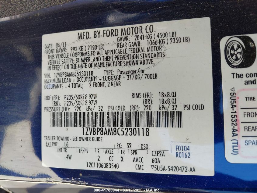 Цвет СинийЦилиндры 6Привод Задний приводVIN 1ZVBP8AM8C5******Состояние НеизвестноПовреждения Левая сторона AutoRIA